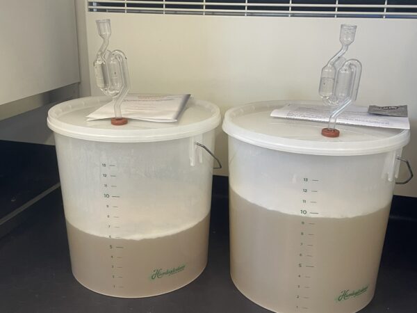Det var kommentaren när jag bjöd på mitt första egenhändigt tillverkade mjöd! Jag gjorde i ordning de båda satserna i september och skulle ha tappat om dem efter ca 4 veckor. Det blev förra veckan … då tappade jag om och sköljde bort bottensatsen. Samtidigt tappade jag upp två små smakprover.