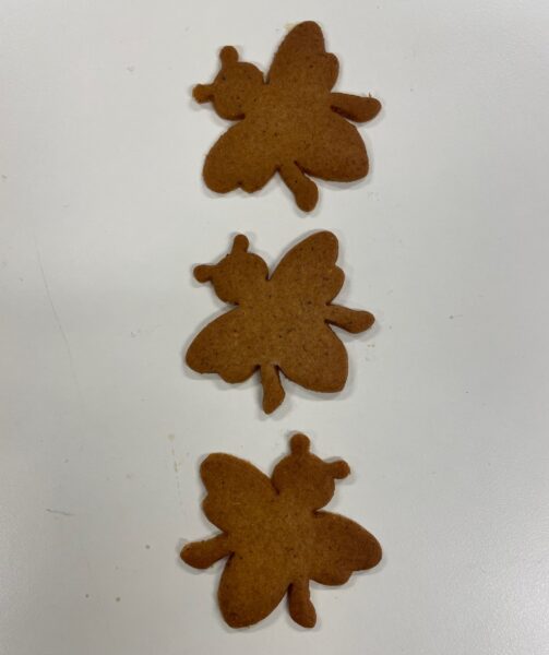 Min biodlarkompis Birgitta hälsade på härom dagen. Tänk – hon hade bakat helt perfekta pepparkakor i form av bin som hon bjöd på. Tyvärr kom hon inte ihåg varifrån hon fått pepparkaksformen! Biodlarens pepparkakor – nästan för fina för att äta upp! Om jag hade bi-pepparkaksformar så skulle jag också baka …